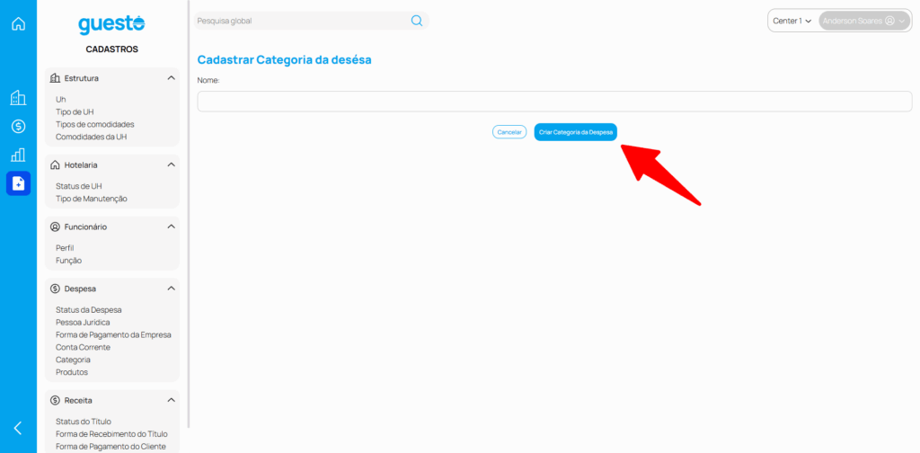 4 – Preencha com o nome e clique em “Criar Categoria de Despesa”.