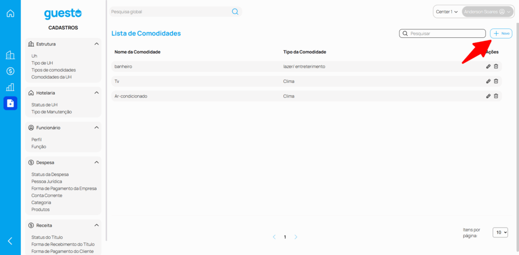 Para adicionar uma nova comodidade, siga os seguintes passos: