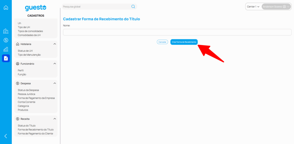 4 – Preencha com as informações pertinentes e clique em “Criar Forma de Recebimento”.