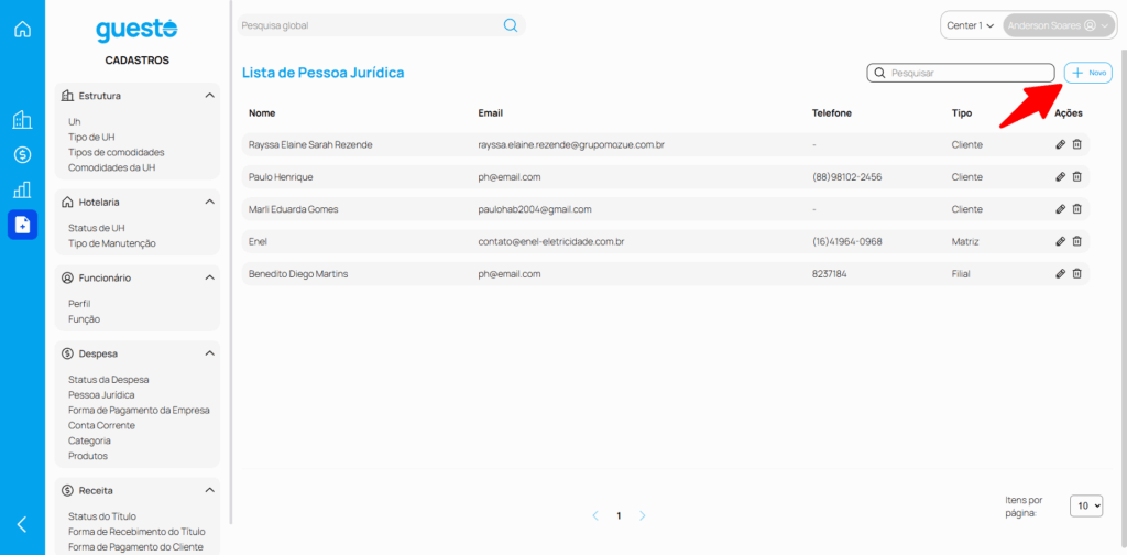 Para adicionar uma nova Pessoa Jurídica, siga os seguintes passos: