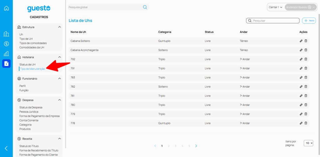 2 – Clique em “Comodidades da UH” no submenu de Estrutura.