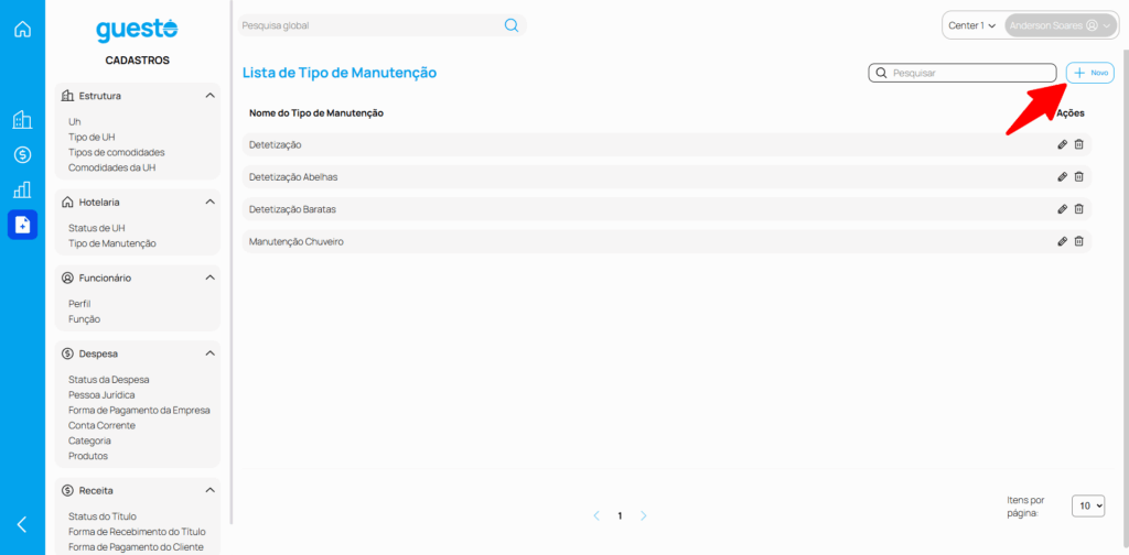 Para adicionar um novo tipo de manutenção, siga os seguintes passos:
