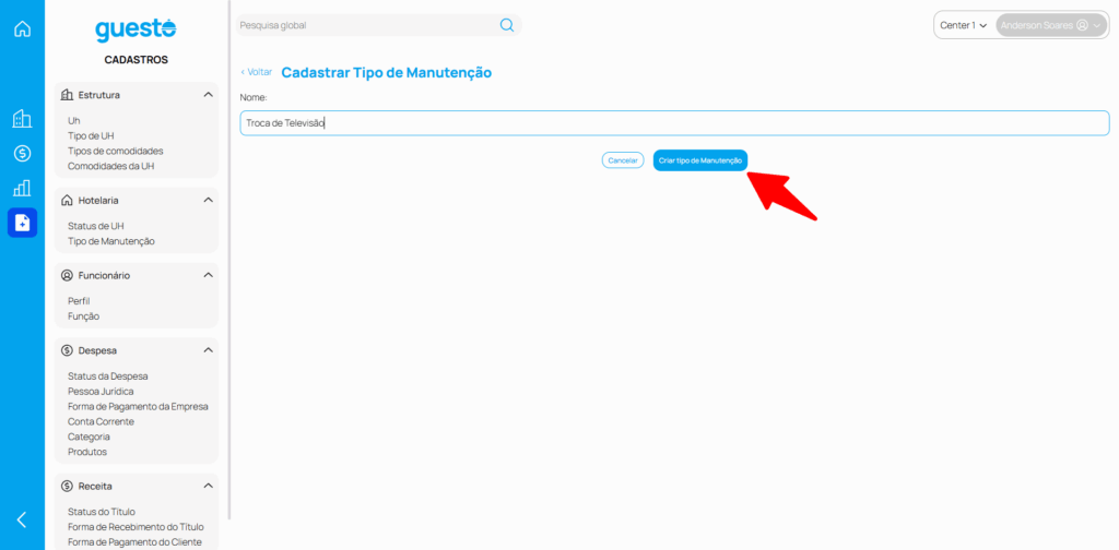 4 – Preencha com as informações pertinentes e clique em “Criar Tipo de Manutenção”.