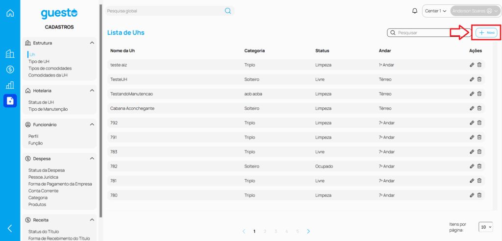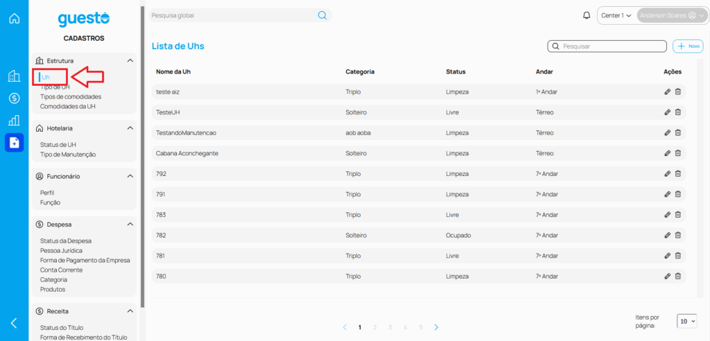 Para adicionar uma nova Unidade Habitacional (UH), siga os seguintes passos:
