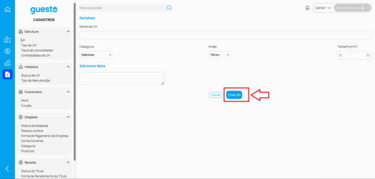 4 – Preencha as Informações pertinentes e clique em “Criar UH”.