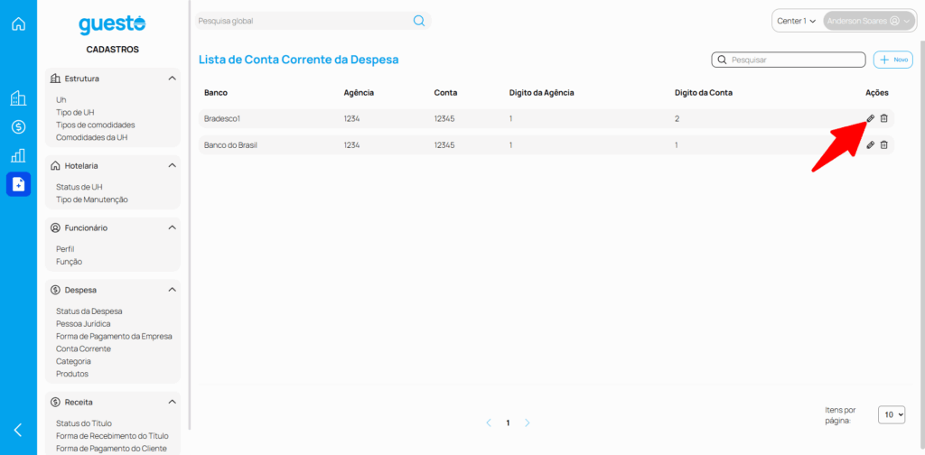 2- Clique em “Conta Corrente” no submenu de Estrutura.
