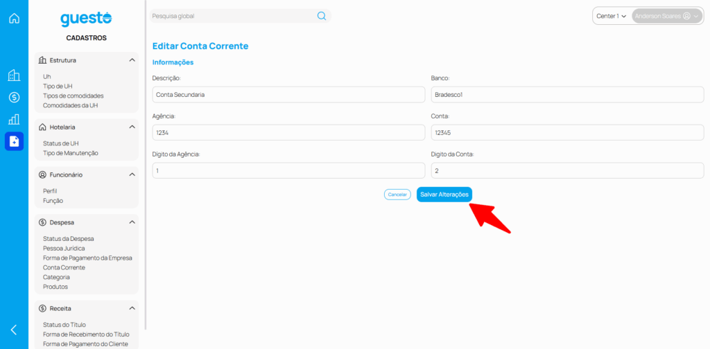 4 – Altere as informações pertinentes e clique em “Salvar Alterações”.