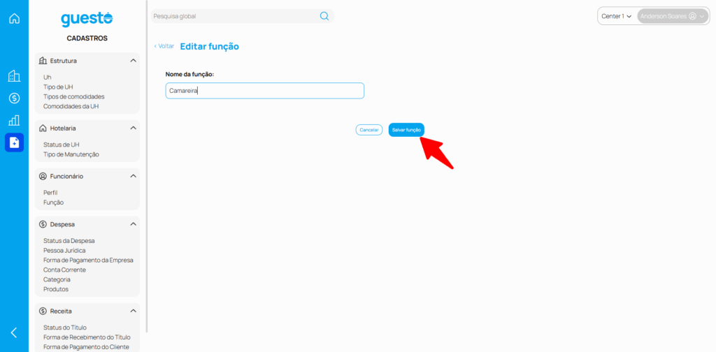 4 – Altere as informações pertinentes e clique em “Salvar Função”.