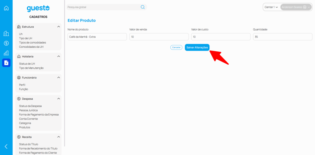 4 – Altere as informações pertinentes e clique em “Salvar Alterações”.