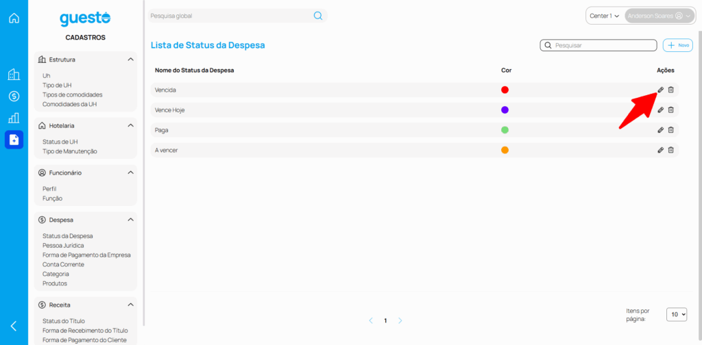2- Clique em “Status da Despesa” no submenu de Estrutura.
