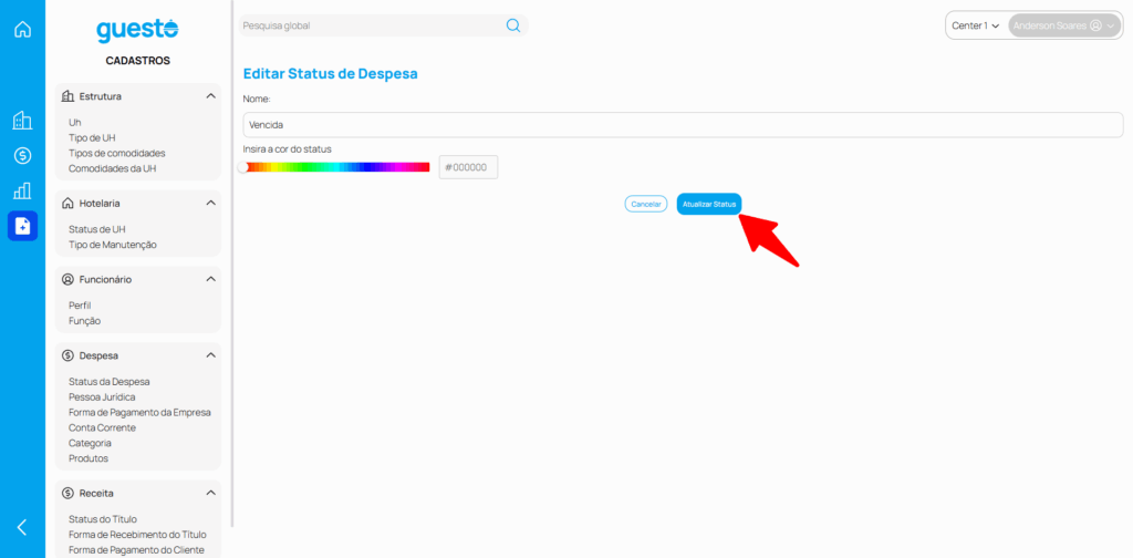 4 – Altere as informações pertinentes e clique em “Atualizar Status”.