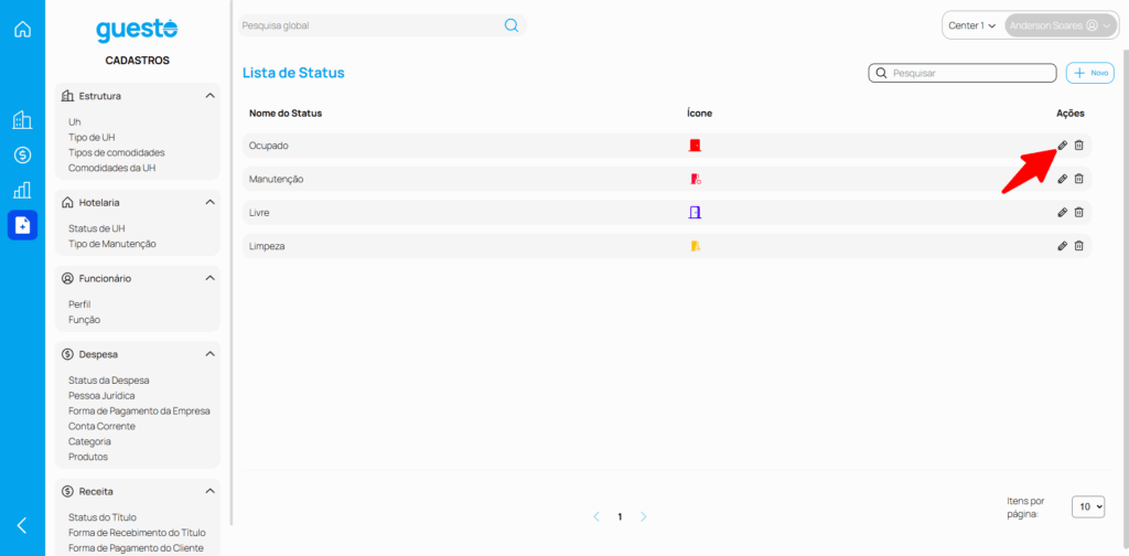 Para editar um status de UH siga os seguintes passos: