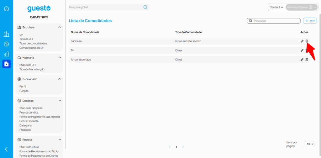 2- Clique em “Tipos de comodidades” no sub-menu de Estrutura.