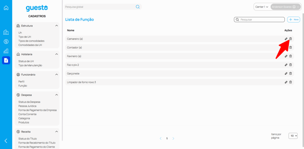 3 – Clique no ícone de lixeira e confirme a exclusão.