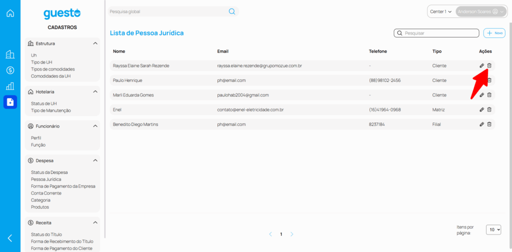 Para excluir uma Pessoa Jurídica siga os seguintes passos: