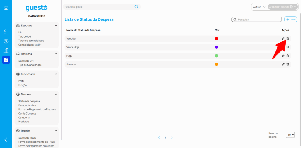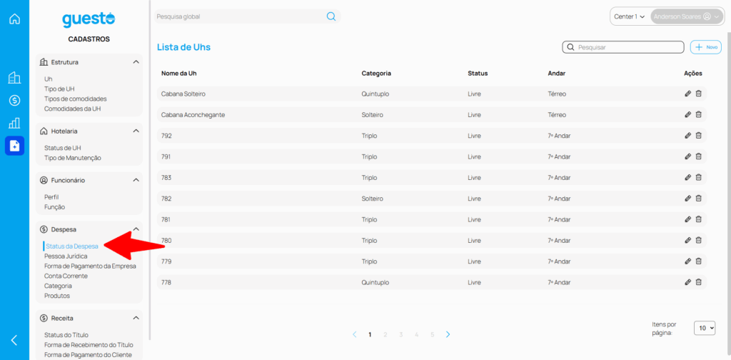 2- Clique em “Status da Despesa” no submenu de Estrutura.