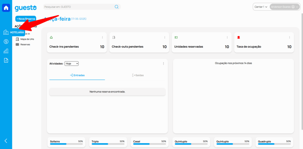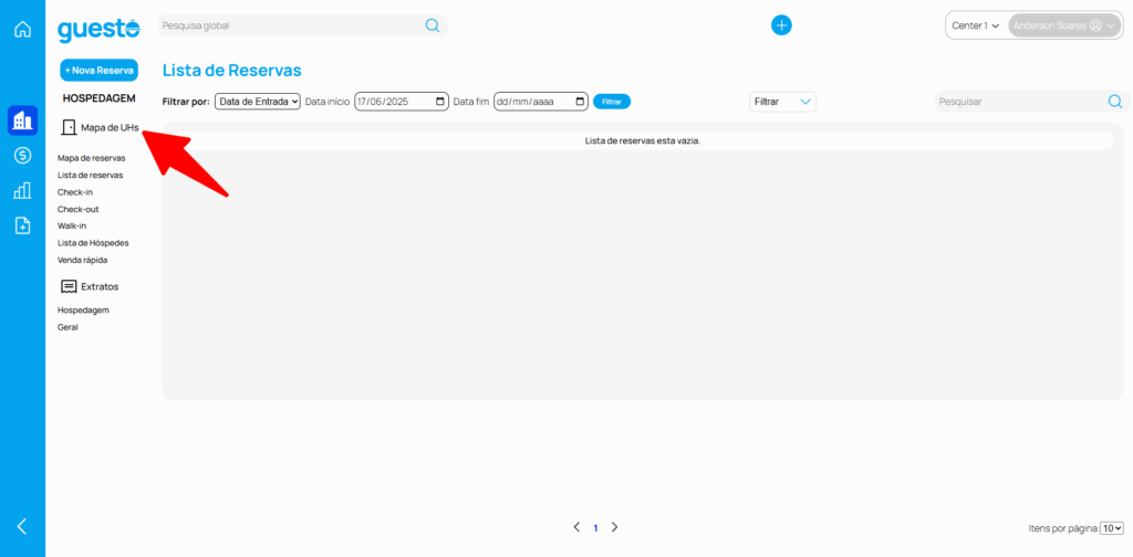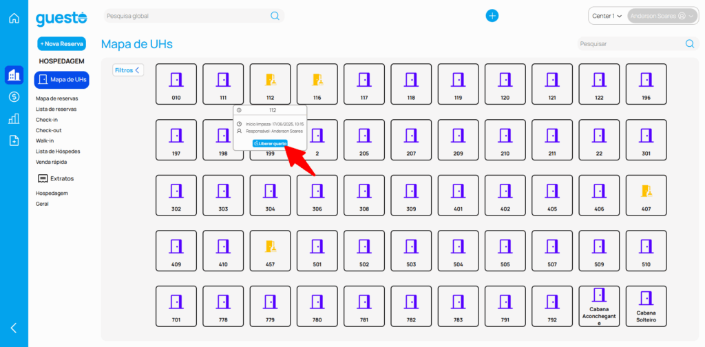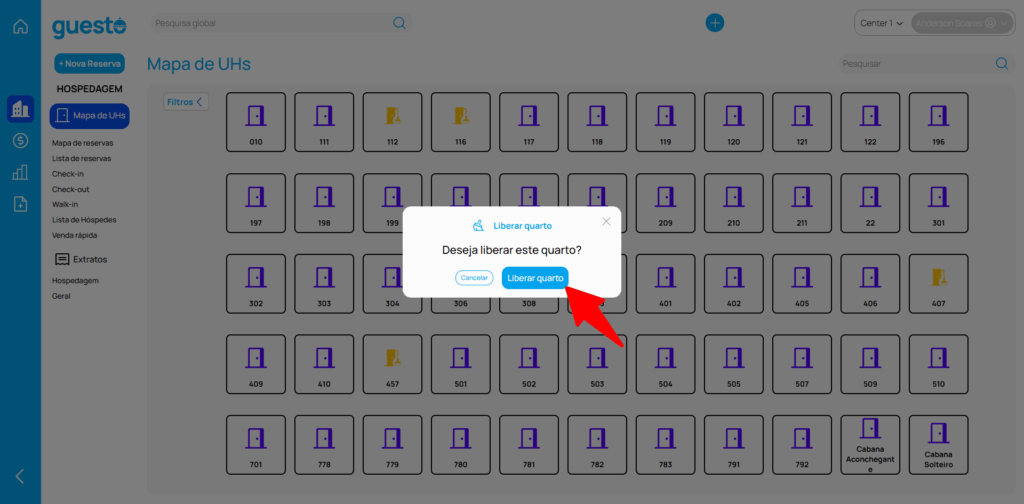 3 – Clique com o botão esquerdo na UH que você finalizar a limpeza, depois clique em “Liberar quarto”.