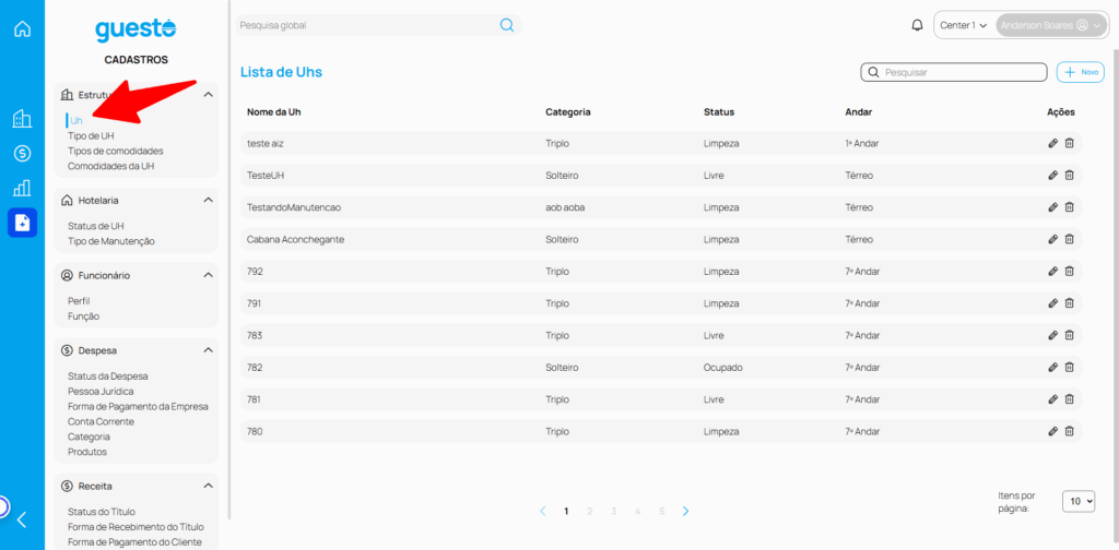 2 – Clique em “Uh” no sub-menu de Estrutura.