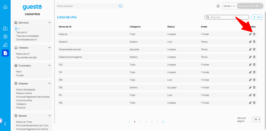 Para remover uma nova Unidade Habitacional (UH), siga os seguintes passos: